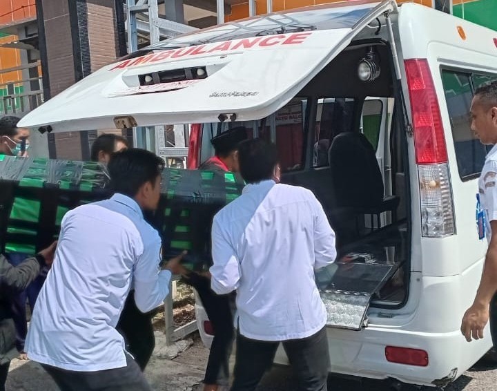Lalu di mandikan dan dikemas dalam peti jenazah kemudian di sholatkan di Masjid Besar Jihadul Ukhro Ruteng.